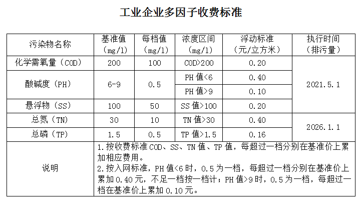 工業(yè)企業(yè)多因子收費(fèi)標(biāo)準(zhǔn)