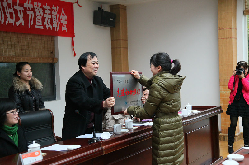 圖為集團高副書記為獲得2011年度婦聯(lián)先進集體頒獎