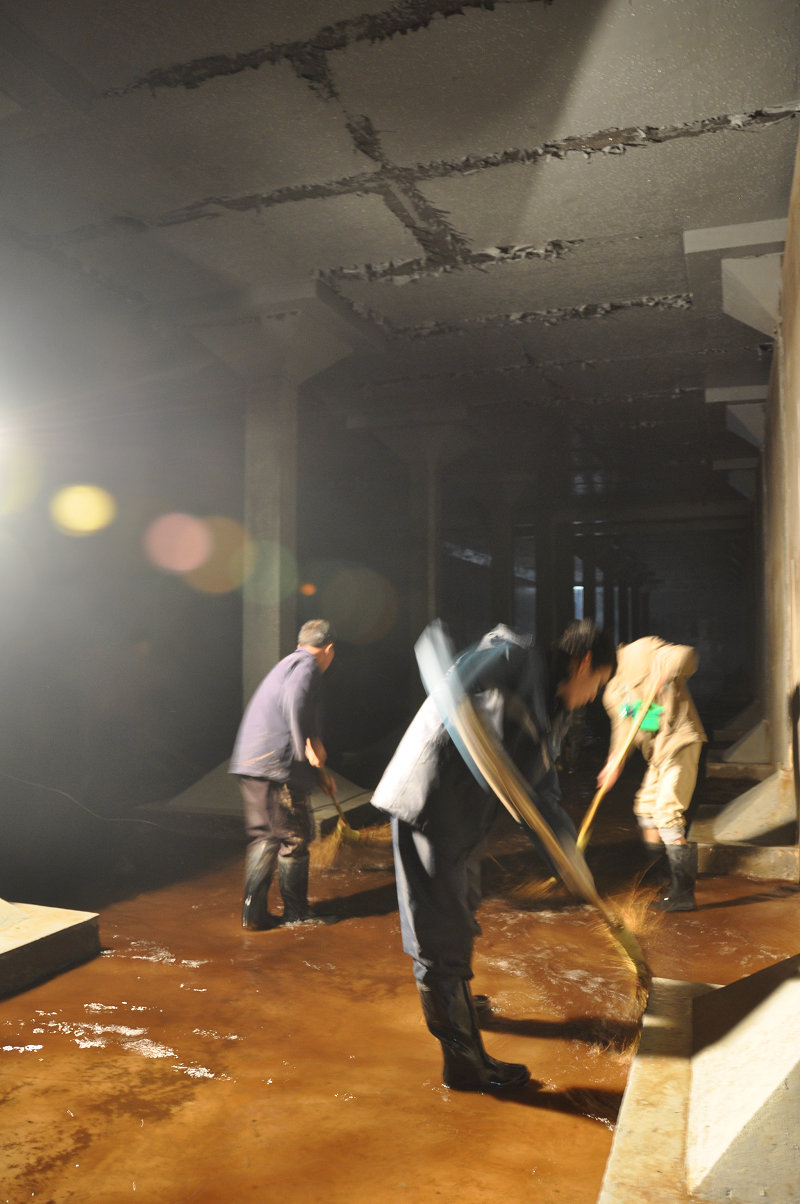 圖為供水公司員工正在清洗清水池