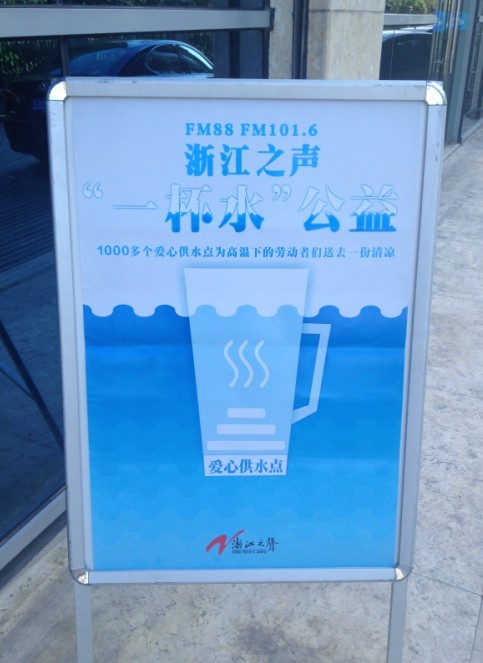 供水公司積極響應“浙江之聲——一杯水公益活動”,從8月6日起,在全縣各供水營業(yè)大廳設立“愛心飲水點”,