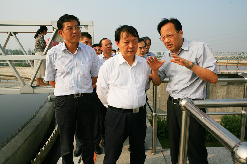 ,新疆維吾爾自治區黨委常委、常務副主席黃衛率考察團一行到江濱水處理公司考察印染產業集聚區污水集中預處理情況。紹興市委常委、縣委書記何加順陪同考察。