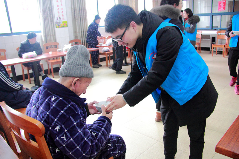 服務中心,其樂融融,團員青年們將慰問品一一送到老人手中,陪著老人家們聊家常、吃湯圓,歡聲笑語匯成一片。老人們對大家的到來表示感謝,感謝大家從百忙之中和他們共度佳節,為他們帶來了歡樂。