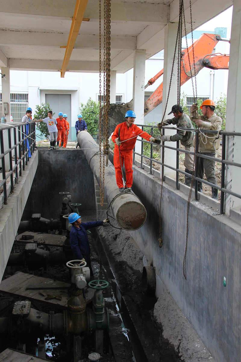 5月16日上午8:00開始,排水公司搶修人員對常年受酸性污水腐蝕的濱海北側(cè)1#泵站的80米出水總管進(jìn)行突擊更換。該污水總管的更換將直接影響到周邊科瑞化工、怡中印染等22家企業(yè)的生產(chǎn),為把受影響企業(yè)的損失減少到最低程度,排水公司制訂了詳細(xì)、周密的施工方案,計(jì)劃連續(xù)施工96個(gè)小時(shí)打好這場硬仗。