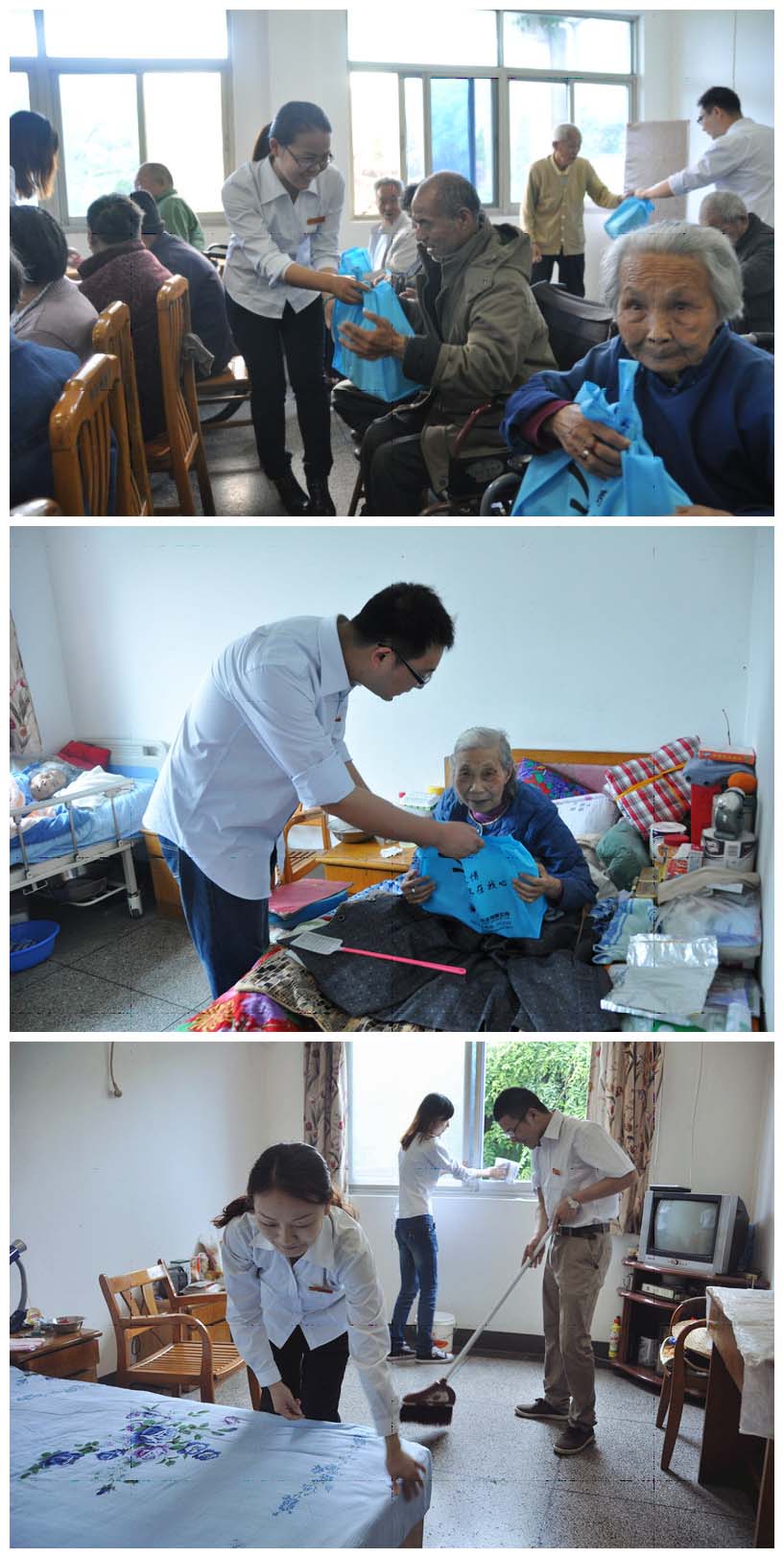 為發揚中華民族尊老愛老的傳統美德,增強我公司青年志愿者尊老愛老的意識。58日上午,公司10多名志愿者來到柯橋夕陽紅中心,為老人鋪床打掃衛生,并將公司精心準備的蛋糕、水果、毛巾等慰問品一一送到老人們的手中,奉獻自己的一份愛心。