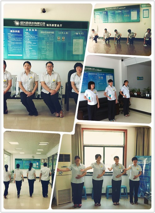 本次培訓(xùn)主要包括客服人員儀態(tài)行為規(guī)范訓(xùn)練、接待服務(wù)禮儀訓(xùn)練、微笑服務(wù)禮儀和訓(xùn)練營業(yè)窗口服務(wù)流程訓(xùn)練四方面,通過模擬、互動、練習(xí)與以老帶新等多種學(xué)習(xí)方式,調(diào)動了客服人員的學(xué)習(xí)積極性,使各人員熟練掌握了規(guī)范的坐姿、站姿、走姿、蹲姿以及微笑禮儀等具體服務(wù)禮儀,培訓(xùn)結(jié)束后還現(xiàn)場模擬了收取水費等具體服務(wù)過程,收到了較好的培訓(xùn)效果。
