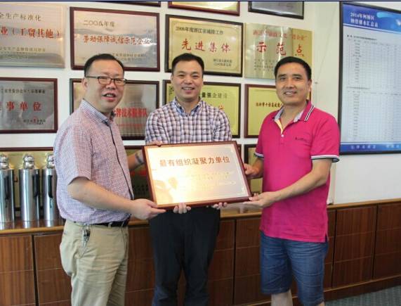公司榮獲浙江省“最有組織凝聚力單位”稱號